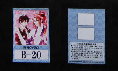 血風録と九龍の配布チラシと、九龍素材のCD(私のは夷澤凍也君の絵とキャラデザの齋藤晋さんのサインが入ってます)、今回の素材についての注意の紙、座席札です。